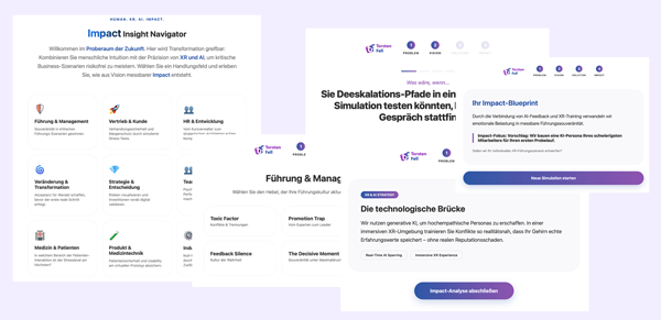 Identifizieren Sie Ihre strategischen Hebel und generieren einen Blueprint für Ihren Erfolg. Sie erhalten eine glasklare XR- & KI-Roadmap, um Ihre Vision direkt in messbaren Business Impact zu verwandeln.